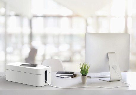 Idealne rozwiązanie na kable i przewody dzięki CAVOLINE_. Gama produktów oferuje koncepcje na uporządkowanie okablowania, a tym samym zapewnia większe bezpieczeństwo w miejscu pracy. Elegancki i nowatorski pojemnik nie tylko zapewnia porządek , ale oferuje wiele innych dodatkowych korzyści. Cała seria CAVOLINE_ sprawdza się nie tylko w biurze, ale również w zaciszu domowym. _ Niebanalny ogranizer do przechowywaia kabli oraz listwy zasilającej 5 gniazd _ Dwa otwory na przewody nie tylko są łatwe w obsłudze, ale zapewniają idealną cyrkulację powietrza _ Pokrywa z praktycznym okrągłym otworem na kabel do ładowania telefonu komórkowego _ Z wysokiej jakości trudnopalnego tworzywa sztucznego _ Antypoślizgowe stopki z tworzywa _ Wymiary: 406 x 139 x 156 mm (szer. x wys. x gł.)