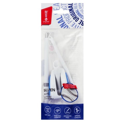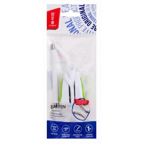 Długopis biurowy MemoBe Stilo na sprężynce. Elegancki, nowoczesny design. Posiada samoprzylepną podkładkę. Trwała rozciągająca się sprężynka o długości do ok. 1 m. Grubość końcówki piszącej: 0,7 mm. Długość linii pisania: >900 m. Jednostka sprzedaży 1 szt. Dostępne również wymienne wkłady MW108-03-20 lub MW108-02-20.