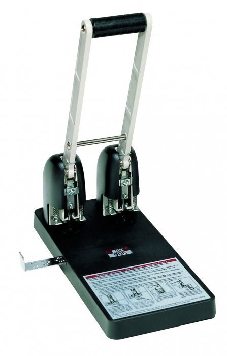 Profesjonalny, metalowy dziurkacz_posiada ogranicznik formatu: SAX908: B6-S/A5-S/B5-S/A3S/A4-S/B5-E/A4-E/B4-E/A3-E; SAX988: B4-S/B3-E/A3-E/A2-E_dziurkuje do 150 kartek_na 2 lub 4 dziurki_średnica dziurki: 5,5mm_odstęp pomiędzy dziurkami: 80mm_wymienne bolce tnące SAX908/1 (1szt.)_wymienne kółka SAX908/2 (4szt.)_podstawa wyposażona w antypoślizgowe elementy_10 lat gwarancji