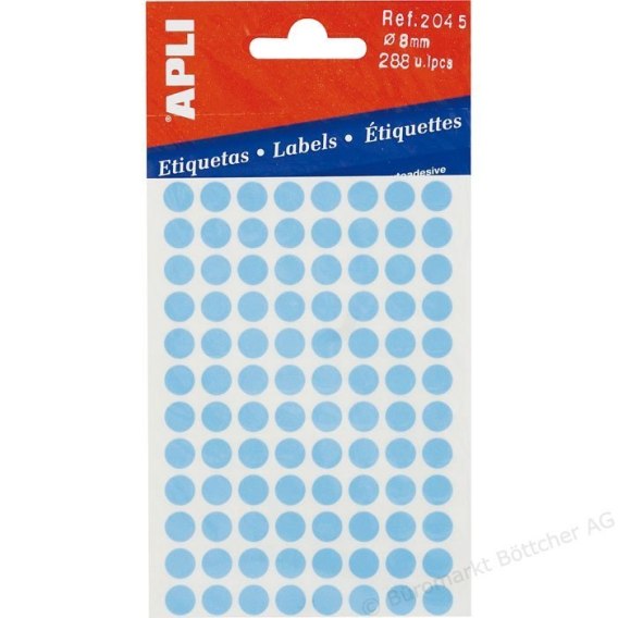 | Nazwa B2B | Samoprzylepne kółka APLI 8mm/288szt (mini bag) niebieskie |