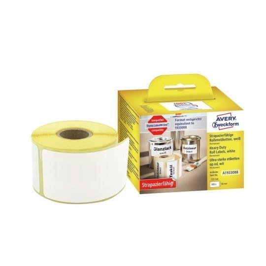 • Etykiety Heavy Duty w rolce do drukarek termicznych DymoTM , 300 etyk. / rolka, 59 x 102 mm , poliestrowe, trwałe, białe, AVERY