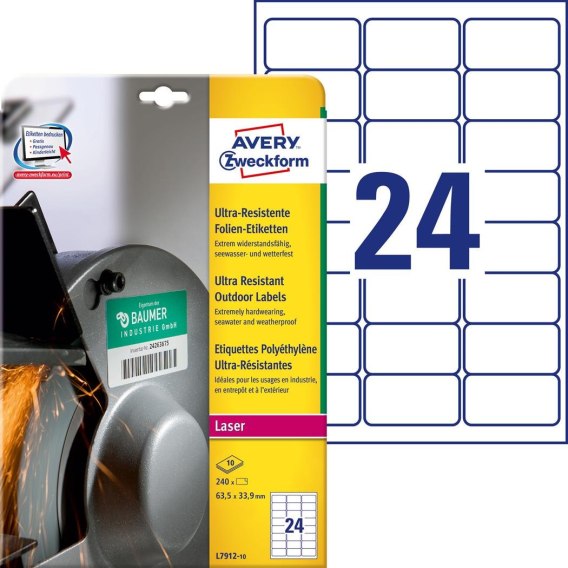 Etykiety UltraResistant L7912-10 63,5x33,9 10ark polietylenowe Avery Zweckform |