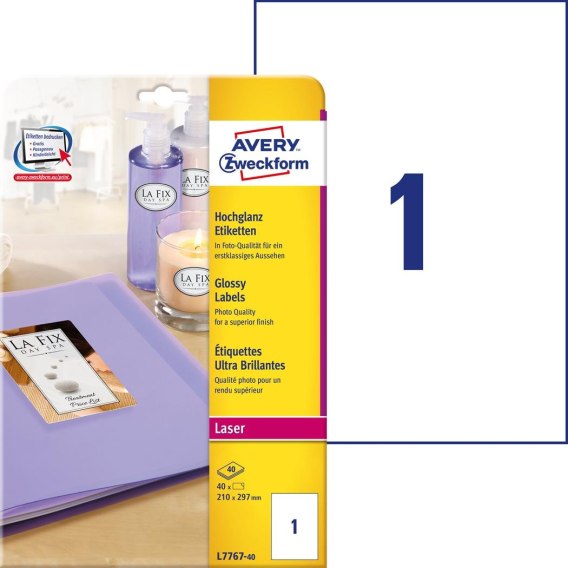 Etykiety błyszczące L7767-40 210 x 297 40ark Avery Zweckform |