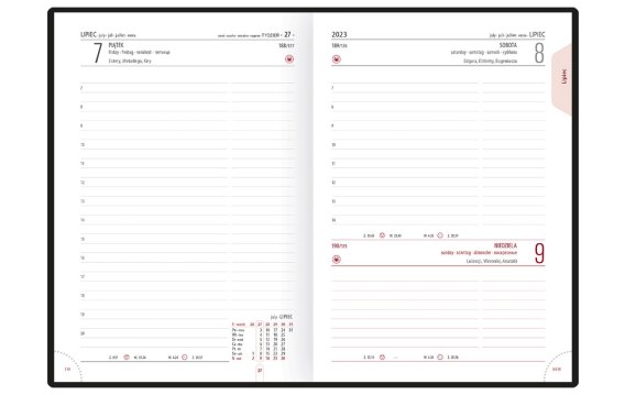 Kiedy klient mówi o "A-piątce" to wiemy, że chodzi o ten właśnie kalendarz. Układ dzienny na białym, ekologicznym papierze. Dużo miejsca do pisania. Prawdopodobnie najbardziej popularny kalendarz.