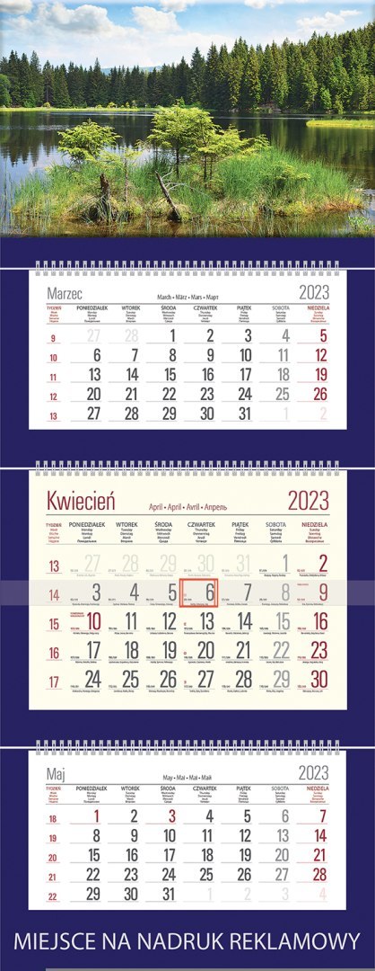Kalendarz Trójdzielny z główką (T02) JEZIORO - granat 2024 TELEGRAPH
