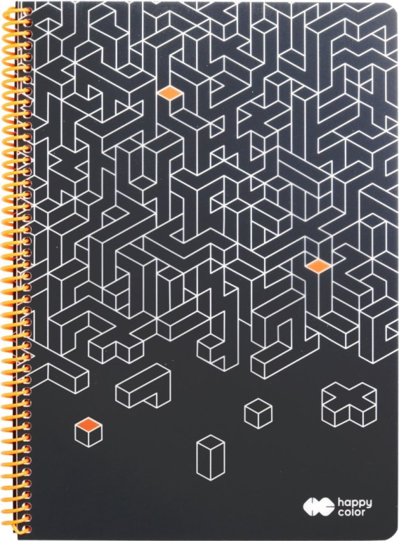 Design kolekcji Just, utrzymany w kolorystyce minimalistycznej, czarno-białej oraz z delikatnymi elementami pomarańczowymi. Sztywna okładka PP. Spirala dopasowana kolorystycznie do designu okładki. Biały papier 80g w szarą kratkę. 80 kartek. Format: B5 lub A4. 4 szt. w opak. zb.
