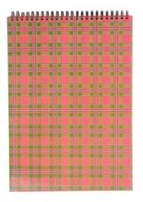 Kołozeszyt w twardej oprawie w spirali 80 kartek w kratkę A4. Wykonany z tektury 1,5mm. Okleina uszlachetniona folią polipropylenową, różne wzory w zależności od zastosowanego papieru. Spirala zamontowana na krótszym boku brulionu.