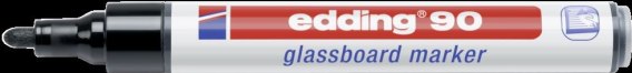 Marker edding 90 przeznaczony jest do pisania po tablicach szklanych - zarówno białych jak i kolorowych. Wysokiej jakości tusz wykazuje doskonałe właściwości kryjące, a jasne i żywe kolory wpływają na lepszy odbiór prezentowanych treści. Tusz jest łatwo usuwalny za pomocą suchej ściereczki. Marker wyposażony jest w okrągłą końcówkę o grubości linii pisania 2-3mm. Specjalnie zaprojektowany zawór reguluje dopływ tuszu do końcówki - wystarczy kilkukrotnie docisnąć końcówkę do kartki i gotowe. Przed użyciem należy energicznie wstrząsnąć. Kolor: czarny.