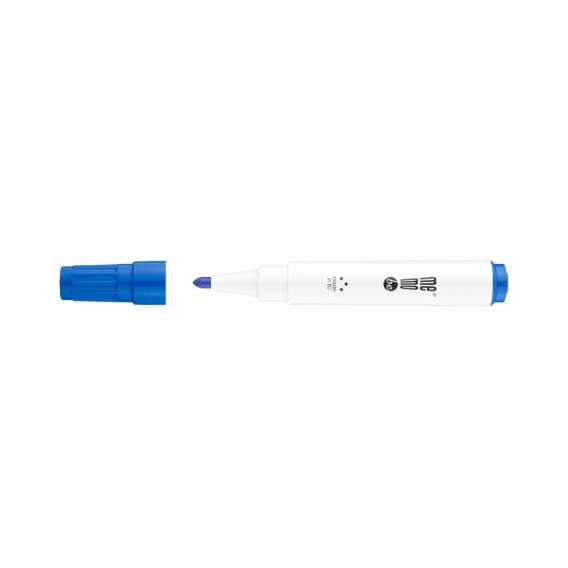 Marker do tablic suchościeralnych i flipchartów MemoBe z tuszem w kolorze niebieskim i okrągłą końcówką w rozmiarze 1-3 mm. Przeznaczony do pisania i rysowania po powierzchni tablicy suchościeralnej i po blokach do flipchartów. Może być pozostawiony bez skuwki do 3 dni (ISO 554). Łatwościeralny z tablic tusz nie przebija na drugą stronę bloków do flipchartów. Obudowa markera wykonana w 30% z tworzyw z recyklingu. Wyposażony w wentylowaną skuwką zgodną z normą ISO 11540:1993. Dostępny w 4 kolorach: czarnym, zielonym, czerwonym i niebieskim. Wyprodukowany w Europie. Dostarczany w opakowaniu 10 szt.