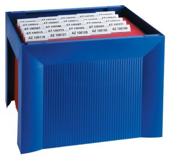 Wykonane z trwałego polistyrenu_mieści 35 teczek zawieszkowych_umożliwia archiwizowanie dużych ilości dokumentów_specjalne rozmieszczenie krawędzi zawieszkowych zapobiega zaginaniu indeksów teczek_możliwość ustawiania także piętrowo_stanowi estetyczny element wyposażenia przestrzeni około biurkowej, jak również może być umieszczone w szufladzie archiwizacyjnej_składane, bardzo proste w montażu_wymiary: 360x320x264mm_kolor niebieski