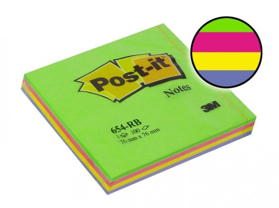 654-RB Bloczek samoprzylepny Post-it_, _- wiosenny, _- sztuka 100 kart, 76x76 mm_- jednostka sprzedazy 1 sztuka