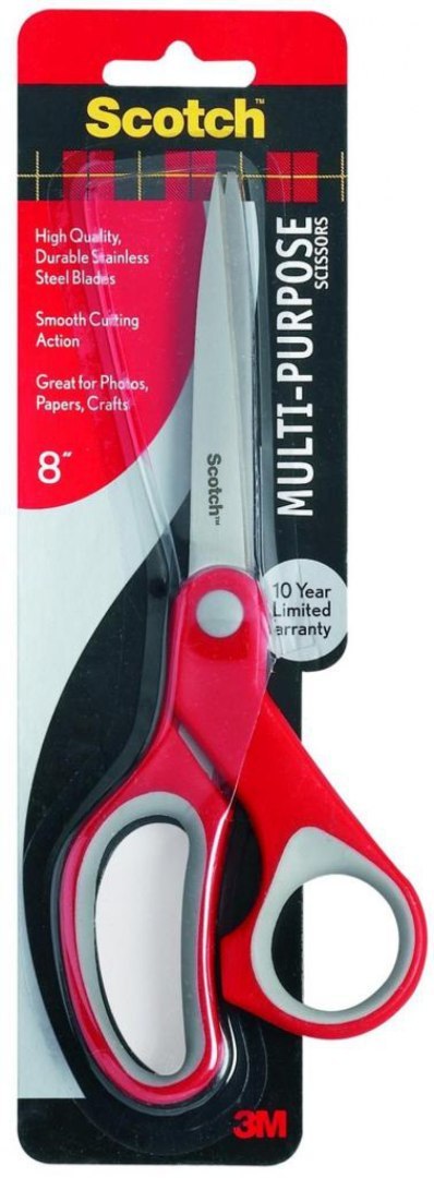 Nożyczki biurowe SCOTCH (1428), 20,5cm, ergonomiczne, czerwono-szare