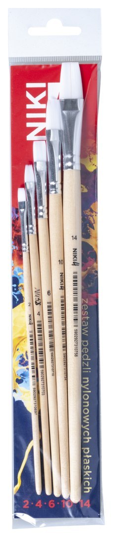Pędzle nylonowe płaskie 2+4+6+10+14 NIKI4 PED-0068N3