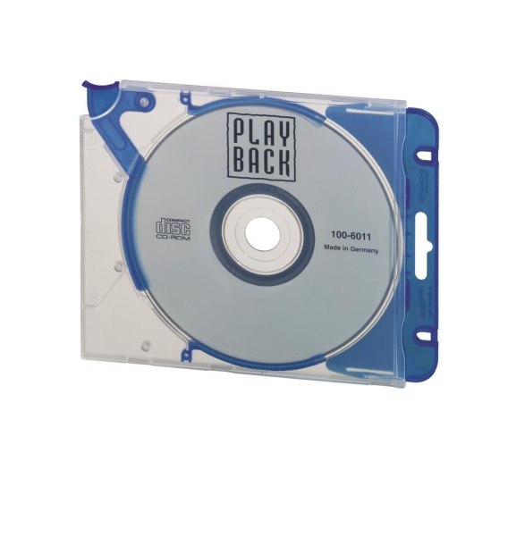 Standardowy pojemnik na płyty CD/DVD z nałożoną listwą umożliwiającą przechowywanie w segregatorach QUICKFLIP archiv.
