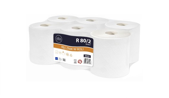 Ręcznik w roli PROFESSIONAL 80/2 (6 rolek) 80m 2warstwy celuloza biały ELLIS 3025