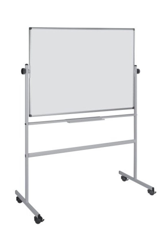 Doskonałej jakości dwustronna, stalowa, lakierowana powierzchnia_odporna na zadrapania, powstawanie smug i zabrudzeń_posiada 4 kółka umożliwiające łatwe przemieszczanie, z możliwością blokady_wąska, aluminiowa rama_obrotowy mechanizm pozwala na szybką wymianę prezentowanych stron_wyposażona w składaną półkę na markery, gąbkę, magnesy_idealna do niewielkich pomieszczeń_posiada zestaw do samodzielnego mocowania_produkt pakowany jednostkowo w karton ochronny_rozmiar: 150x120cm
