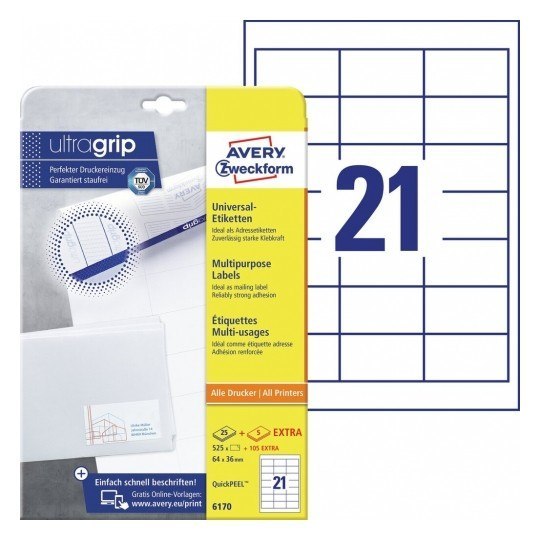 Katalog_2021naz Trwałe etykiety uniwersalne 6170 64 x 36 30 ark. Avery Zweckform