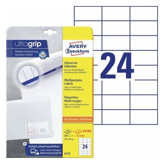 Trwałe etykiety uniwersalne 6173 70 x 37 30 ark. Avery Zweckform |