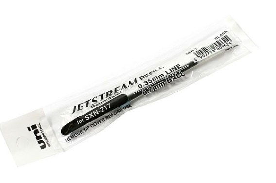 Wkład SXR-C7 do pióra kulkowego SX-217 Jetstream _ tusz zasycha w ciągu 1 sekundy, więc nie rozmazuje się, nie robi kleksów, nie blaknie, nie przesiąka przez papier _ średnica kulki 0,7 mm _ grubość linii pisania ok. 0,35 mm