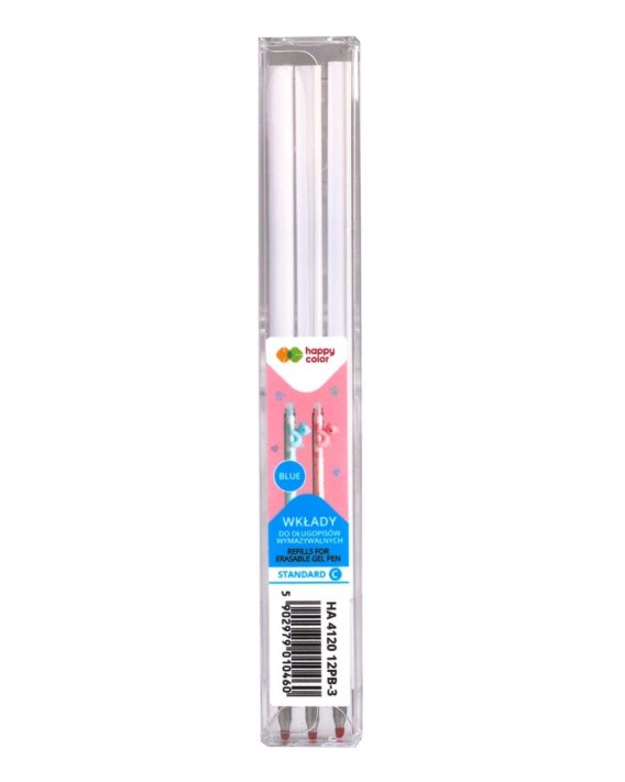 Wkłady do długopisu wymazywalnego PastelBears, Stand. C, 0.5mm, niebieski, 3szt. w etui, Happy Color HA 4120 12PB-3