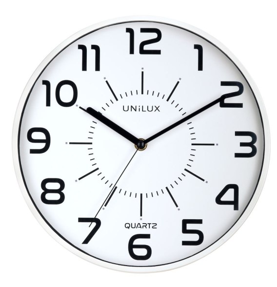 Zegar ścienny POP marki Unilux z obramowaniem z tworzywa sztucznego i osłoną szklaną. Zegar wyposażono w mechanizm kwarcowy - piezoelektryczny oraz płynną wskazówkę sekundnika czyniąc zegar bezgłośny, co wpływa na pozytywnie samopoczucie i koncentracje. Wyraźny cyferblat można odczytać z odległości do 30 metrów. Zegar POP to klasyczne wzornictwo z niezawodnym i ekonomicznym mechanizmem, to doskonały wybór do placówek edukacyjnych, pomieszczeń biurowych, urzędów itp.