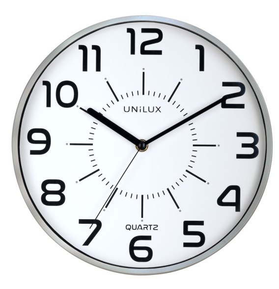 Niesamowicie cichy i precyzyjny!Zegar ścienny Unilux POP cechuje się cichym systemem mechanizmu, który tworzy atmosferę szczególnie sprzyjającą koncentracji i zdrowiu. Mechanizm kwarcowy jest zarówno niezawodny, jak i ekonomiczny.Dzięki wyjątkowemu designowi cyfr i dużym rozmiarom możliwe jest odczytanie godziny nawet do 30 metrów. Wielkość: 28 cm. Zegar zasilany bateriami 1x AA 1,5V.