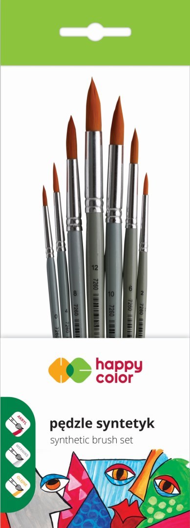 Zestaw pędzli artystycznych, syntetyk, okrągłe, 7 szt, Happy Color HA 7260 1022-01 PB7