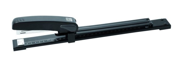 Plastikowe ramię na metalowym przedłużeniu, metalowa podstawa_przedłużona rączka umożliwia uniwersalne zastosowanie_zszywa do 20 kartek_głębokość wsunięcia kartki: 300mm_zszywki: 24/6, 26/6_pojemność: 150, 200 zszywek_podstawa wyposażona w antypoślizgowe elementy_10 lat gwarancji