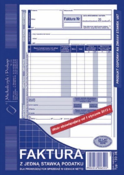 130-3U/E Faktura VAT A5z jedn.st pod.(pion)MICHALCZYK I PROKOP