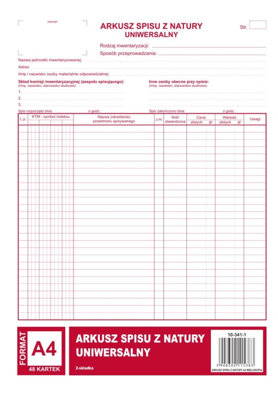 341-1 Arkusz spisu z natury MICHALCZYK&PROKOP A4 (pion) 48 kartek