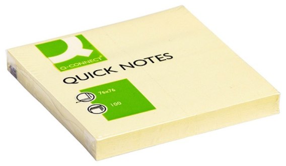 • Bloczek samoprzylepny Q-CONNECT, 76x76mm, 1x100 kart., jasnożółty KF10502