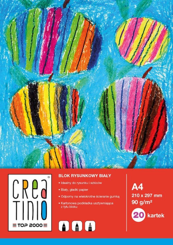 Blok rysunkowy A4 20 kartek 90 g Creatinio biały Top 2000 400079845/400176
