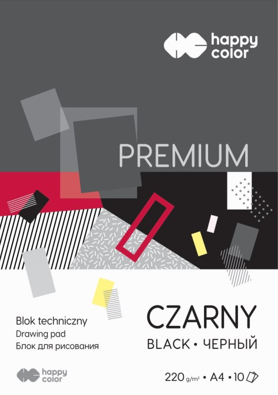 Blok techniczny PREMIUM czarny A4, 220g, 10 ark, Happy Color HA 3722 2030-9