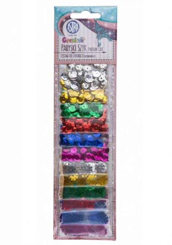 • Cekiny zestaw Paryski Szyk mix 12 kolorów x 2g ASTRA, 335120002