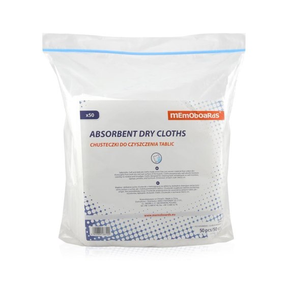 Chusteczki suche do czyszczenia tablic suchościeralnych magnetycznych 50szt. CHS50 MEMOBOARDS