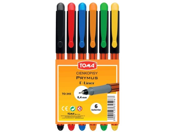 Cienkopis PRYMUS 0,4mm, pomarańczowa obudowa, kpl. 6 kolorow mix TO-345-96 Toma