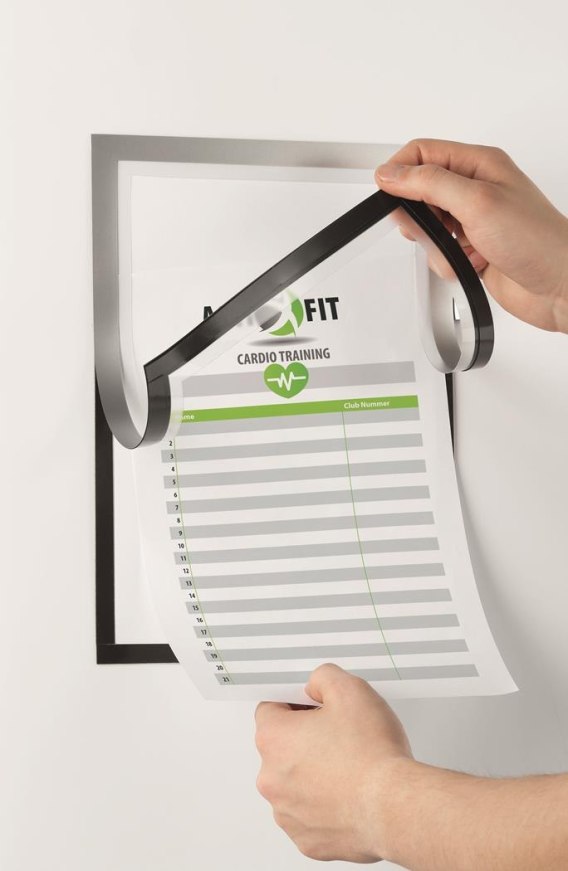 Ramka informacyjna DURAFRAME_ NOTE umożliwia bezpośrednie wpisywanie_na informacji w formacie A4 np. liście z podpisami. Szybkie umieszczenie ramki,_łatwa obsługa i profesjonalny wygląd.__atrakcyjny wygląd ramki__szybka i łatwa wymiana informacji dzięki magnetycznej ramce__bezpośrednie pisanie na umieszczonej kartce__stosowanie w układzie pionowym i poziomym, format A4__pojemność do 5 kartek 80g/m2__uchwyt na długopis z klipsem__samoprzylepna tylna ścianka pewnie przylega do płaskich i trwałych_powierzchni__jednostka sprzedaży 1 sztuka