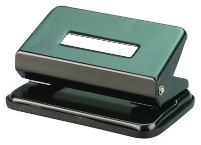 Dziurkacz metalowy, z wykończeniami z tworzyw sztucznych. Wyposażny we wskaźnik środka strony oraz listwę formatową. Srednica otworu 5 mm, rozstaw otworów 80 mm.