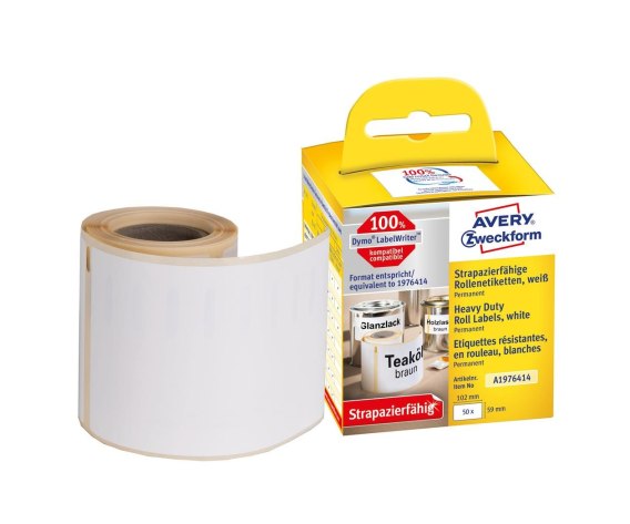 • Etykiety Heavy Duty A1976414 59 x 102 50 et. w rolce do termodruku, poliestrowe, trwałe, białe, Avery Zweckform