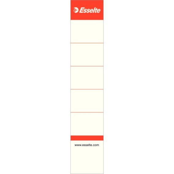 Etykiety grzbietowe Esselte_kartonowe etykiety do samodzielnego drukowania_do wszystkich rodzajach segregatorów Esselte _z grzbietem o szerokości 75/50 mm_specjalny program do zadruku _www.esselte.com/easyprint_jednostka sprzedaży 1 opakowanie (10 arkuszy)