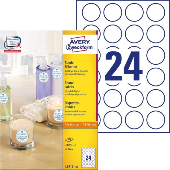 Etykiety AVERY ZWECKFORM o nietypowych kształtach A4, 100 ark./op., _40 mm, białe |