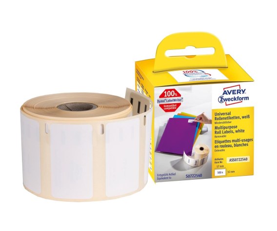 • Usuwalne etykiety uniwersalne Avery Zweckform w rolce do drukarek termicznych