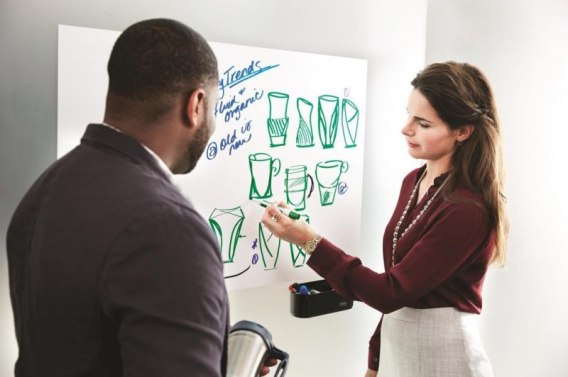 Natychmiastowa i uniwersalna przestrzeń suchościeralna do pracy do aplikacji pionowej lub poziomej_wykorzystaj dowolną przestrzeń (ścianę, stół, okno) jako miejsce do współpracyŁatwa w instalacji - po prostu ją rozwiń, zdejmij folię ochronną a następnie przyklej do powierzchni_gładka powierzchnia, po której łatwo się pisze_folia jest odporna na przeciekanie - można ją wyczyścić przy użyciu suchej szmatki_folia jest elastyczna, więc możesz ją zamontować na nieregularnej powierzchni oraz dociąć do odpowiedniego kształtu_świetnie sprawdzi się do odnowienia zużytej tablicy suchościeralnej lub kredowej_opakowanie zawiera folię suchościeralną Post-it_ Dry Erase w rolce_wymiary: 61x91cm_kolor: biały