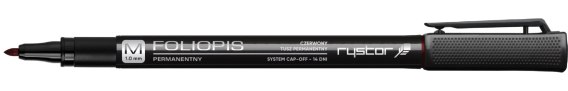 Foliopis Permanentny FM RYSTOR, _- wodoodporny. - Idealny do pisania naprawie wszystkich powierzchniach gładkich takich jak szkło plastik,metal, porcelana, folia, płytach CD/DVD itp.. - Zaopatrzony w szybkoschnący, nie rozmazujący się tusz, odporny na działanie promieni słonecznych; charakteryzuje się dużą intensywnością barw i wyrazistością konturów. - Foliopis może być pozostawiony bez zatyczki przez wiele dni - nie zaschnie. Korek w nasadce i obudowie określa kolor tuszu. - W każdej grubości dostępny również w zestawach 5 sztukowych ( 4 kolory: czarny, czerwony, niebieski, zielony) + dodatkowy czarny GRATIS - jednostka sprzedaży 1 sztuka
