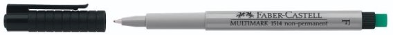 Marker uniwersalny niepermanentny Multimark Faber-Castell w kolorze czarnym. Z fibrową końcówką i zintegrowaną specjalną gumką. Niezawodny na prawie wszystkich powierzchniach np. metal, szkło, płyty CD/DVD, folie do projektorów. Szybkoschnący, intensywny tusz odporny na działanie światła. Rozpuszczalny w wodzie. Specjalna zintegrowana gumka sprawnie dokona korekt na prawie wszystkich gładkich powierzchniach. Szerokość linii pisania: F (0,6 mm). Dostępny 3 szerokościach linii: S, F i M, również w wersji permanentnej. Obudowa i zatyczka wykonane z tworzywa pochodzącego z recyklingu.