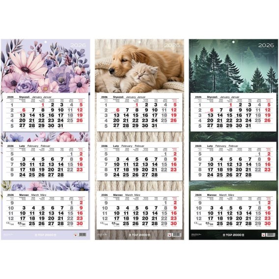 Kalendarz trojdzielny Top 2000 mix 2026 31x71cm 400204171