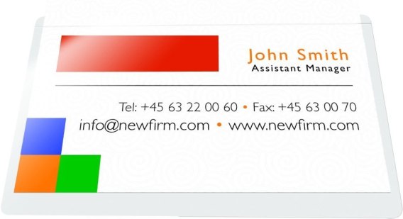 Samoprzylepna tylna strona_wykonana z przezroczystej folii PP (przód i tył: 100_m) bez zawartości kwasu - bezpiecznej dla przechowywanych wizytówek_otwarta po długim boku_klej akrylowy nie powoduje plam_może być nalepiona na prawie każdą powierzchnię: na papier, karton, plastik, itp._wymiary: 95x60mm_10 lub 100 sztuk w j.s.