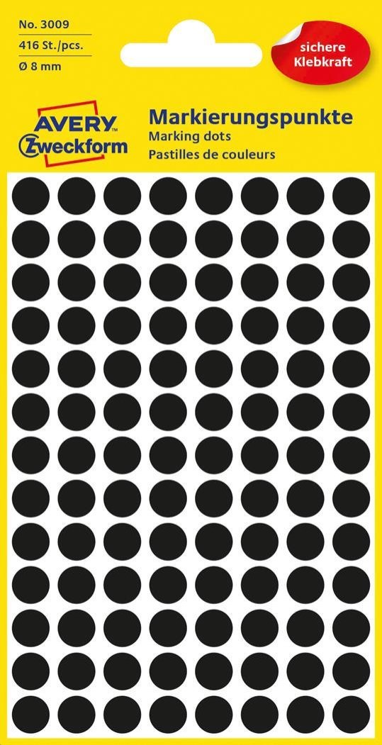 | Nazwa B2B | Kółka AVERY ZWECKFORM do zaznaczania kolorowe 416 etyk./op., _8 mm, czarne |