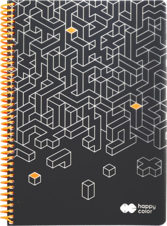 Design kolekcji Just, utrzymany w kolorystyce minimalistycznej, czarno-białej oraz z delikatnymi elementami pomarańczowymi. Sztywna okładka PP. Spirala dopasowana kolorystycznie do designu okładki. Biały papier 80g w szarą kratkę. 80 kartek. Format: B5 lub A4. 4 szt. w opak. zb.