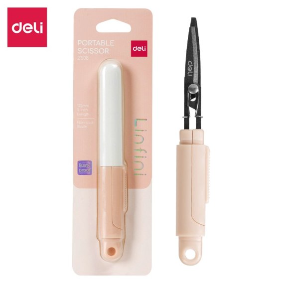 Kompaktowe nożyczki Deli EZ508 w bezpiecznym etui, różowe, EZ508P